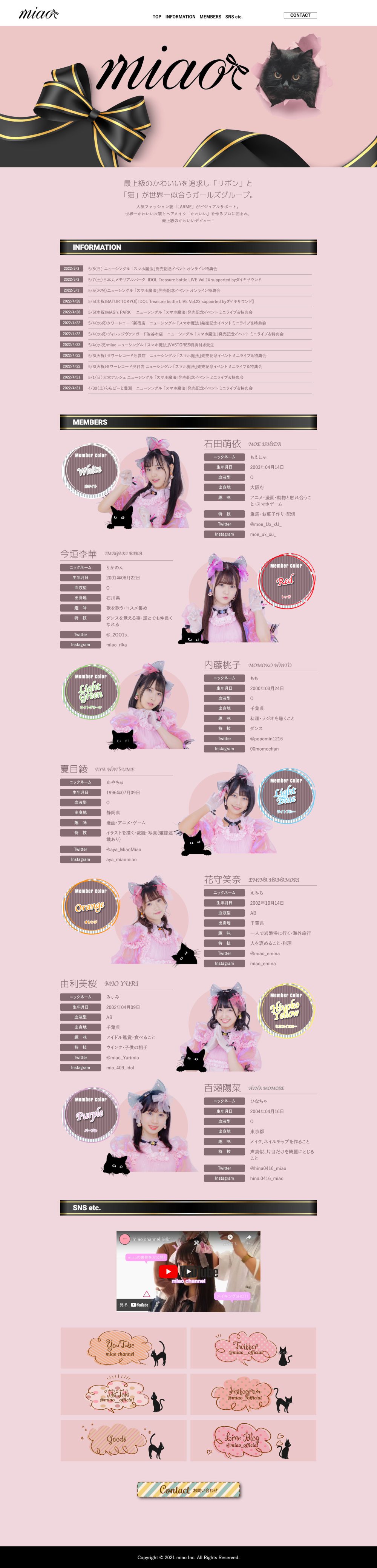 「miao」は、この世で最も甘くて、かわいい世界観を体現する次世代アイドルユニット。オーディションを行い、約2000人の応募者の中から選ばれました。女性ファッション誌「LARME」のビジュアルサポートをはじめ、コリオグラファーに元AKB48・元NMB48市川美織氏、ヘアメイクアップアーティスト夢月氏を迎え「かわいい」を作るプロフェッショナル達に囲まれて、最上級のかわいいを構築。デザイン当初は「LARME」の持つ色の世界観をうまくつかめなかったのですが、何度も色を調節することによって、クリエイティブディレクターのOKをいただきました。